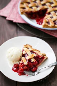 Sour Cherry Pie with Lattice Top from www.loveandoliveo...