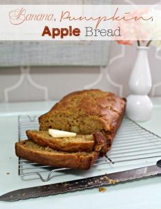 Banana Pumpkin Apple Bread #breadrecipes #fallrecipes #pumpkinbread #applebread #bananabread