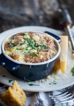 MISO COLLARD GREENS AND CORNBREAD BREAD PUDDING: CHANTERELLES, SMOKED GOUDA, & THYME