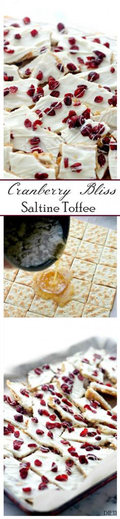 Cranberry Bliss Saltine Toffee | www.diethood.com | Saltine Crackers covered with sweet toffee, melted white chocolate and beautiful, tart cranberries.