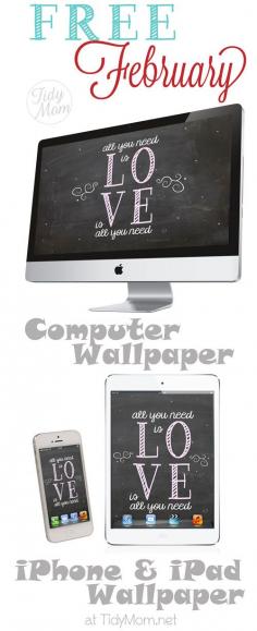 FREE February Blackboard Wallpaper at TidyMom.net for computer, iPhone & iPad at TidyMom.net