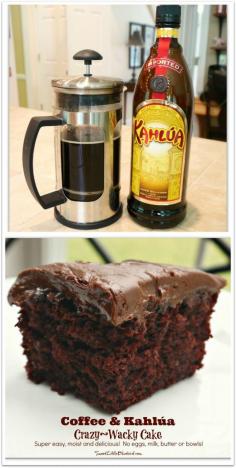 Coffee & Kahlúa Crazy/Wacky Cake! (no eggs, milk, butter or bowls) Moist & delicious. So simple. So good.