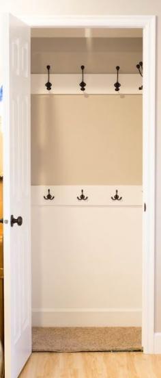 Revamped coat closet - much easier than hangers This is so smart!!!!! Need hooks like this for by the front door