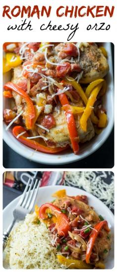 This savory Roman Chicken pairs perfectly with creamy, cheesy orzo! #choppedathome Sargento Cheese