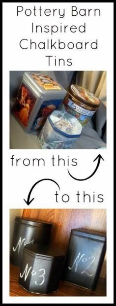 Make these Pottery Barn inspired chalkboard tins with thrift store cast offs and some paint!