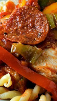 Chicken Pizzaiola ~ Tender baked chicken topped with all of your favorite pizza toppings... Zesty and delicious!