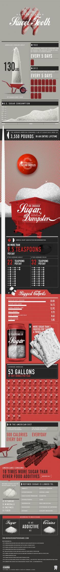 WHITE DEATH... Let's all try to be more mindful of what we eat and drink. Refined sugar is empty calories with no good nutritional benefit to it. Let's drink less soda/sugary drinks and drink more water. Lets eat fruit instead of candy to curb the 'sweet tooth.' Let's eat less packaged/pre-prepared meals and cook more food at home. Healthy eating is key to a healthy lifestyle!