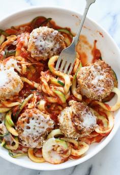 Shrimp Zoodles Parmesan for Two - made on 5/14/2015 - I made chicken zoodles parmesan instead of shrimp! I slided up the chicken to thin pieces and followed the same instructions. The oven baking time for the chicken was the same as the recipe for shrimp. Turned out very well! The chicken was slightly but not too dry, but I sliced them very thin. My first time adapting a recipe!