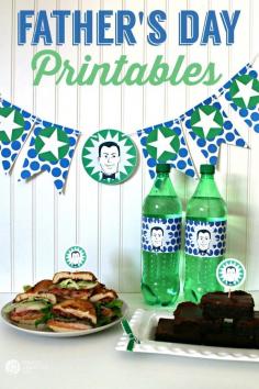 Father's Day Printables for quick celebrations! Printable Father's Day Banner, Bottle wrappers and food picks | See more printables on TodaysCreativeLif...