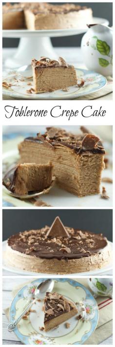 Toblerone Chocolate Crepe Cake - 30 crepes layered with Toblerone ganache and topped with a dark chocolate glaze. ♡o♡ idk what you are but I love you