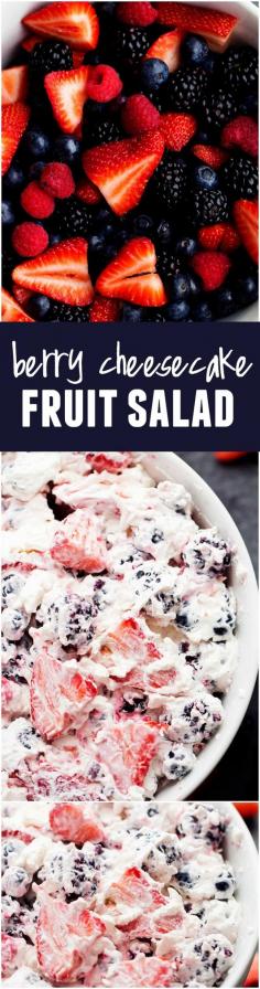Berry Cheesecake (Fruit) Salad - need to add milk or cream to thin this out if served on the side. Might replace the Cool Whip entirely with cream and vanilla extract next time (or vanilla yogurt as suggested in the recipe)