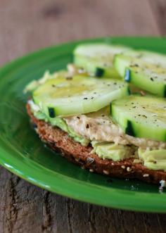 This Cucumber Hummus Avocado Toast is a super healthy snack and easy to make (cucumber, avocado, hummus)